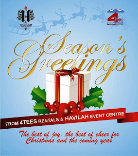 With love from Havilah Event Centre,we wish to send greetings for a happy holiday season that brings joy. May the New year delight you with all of the wonders and wishes you seek.
